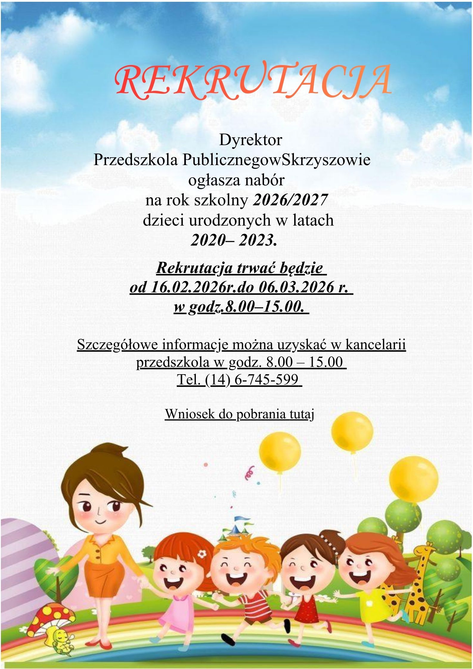 oraz na stronie internetowej przedszkola: w zakładce zapisy.